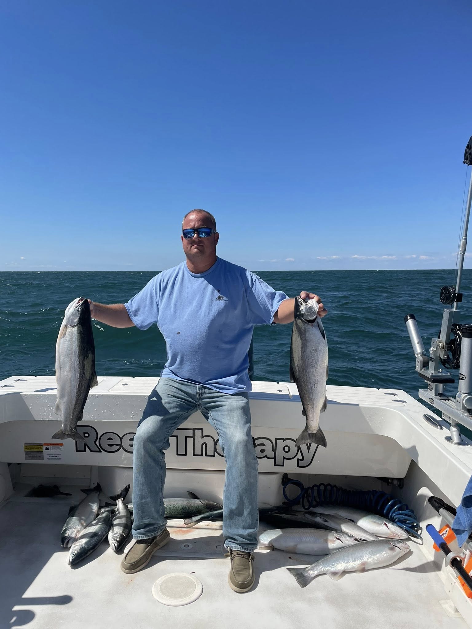 Explore our captivating photo gallery showcasing the incredible moments of success, thrilling catches, and delighted clients aboard Reel Therapy Sportfishing. Join Captain Dan Lemon on unforgettable Lake Erie walleye and perch fishing trips, and witness the excitement and joy that our clients experience as they reel in their prized catches. From action-packed fishing scenes to happy clients proudly displaying their trophies, our gallery tells the story of the memorable adventures waiting for you with Reel Therapy Sportfishing.
