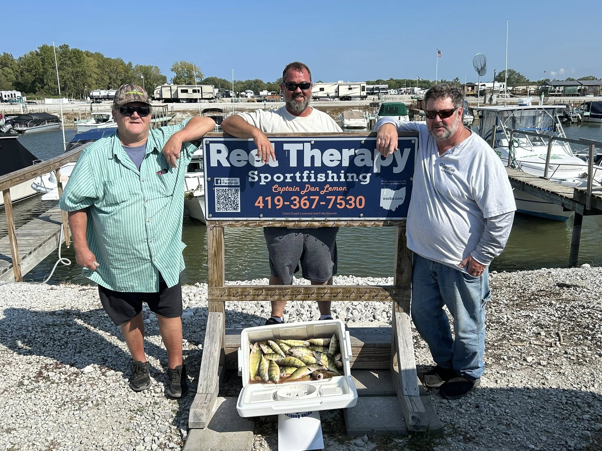 After a successful walleye trip in early August, Todd came back today to give perch fishing a try. These guys stayed on the rail all day, which paid off with 90 perch that weighed in at 26lbs. It was a very light bote with quite a few shorts that were theown backnti be caught another day. Blue perch fly rigs seemed to work best. We were north of the Toledo Harbor lighthouse in 21’ of water. I still have several days open in October. Give me a call and shoot me a message if you’d like to secure your date to fish for some Lake Erie Gold!